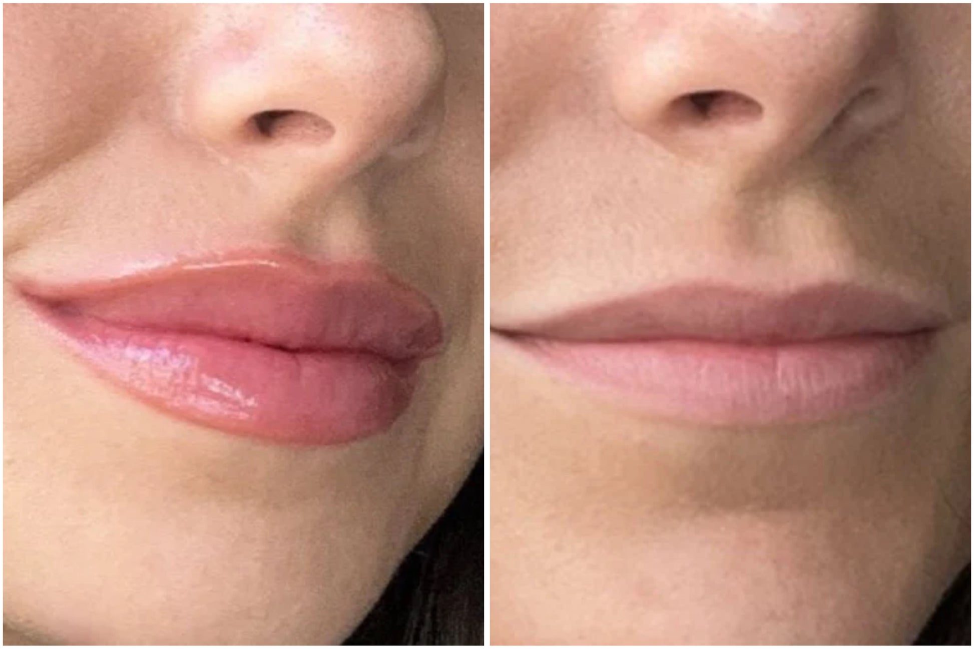 “J’adore ce gloss ✨ il repulpe mes lèvres en quelques minutes sans effet collant.Là j'en ai appliqué que sur la partie gauche et wow”