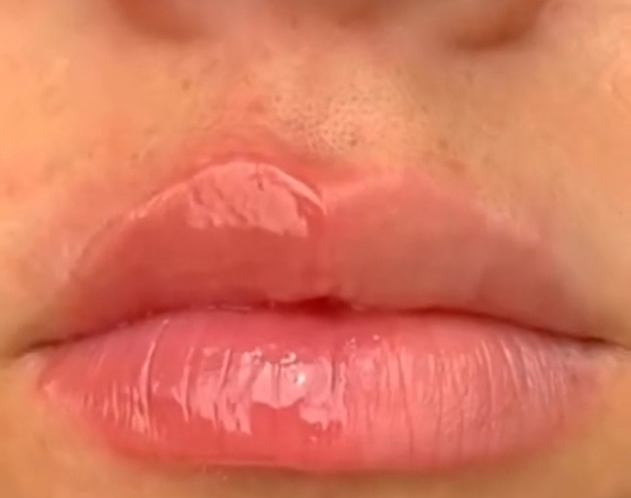 “J’adore ce gloss ✨ il repulpe mes lèvres en quelques minutes sans effet collant.Là j'en ai appliqué que sur la partie gauche et wow”